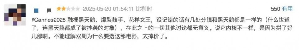 另外,不得不提的是,不少观众指出本片融梗了《黑天鹅》、《爆裂鼓手》、《我,花样女王》等电影,剧情、人物,甚至分镜都高度相似,是否能被定义为抄袭则见仁见智了。