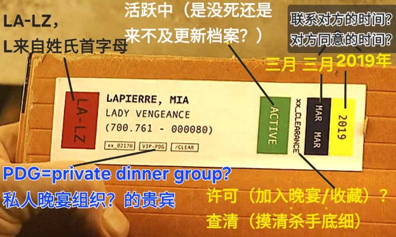mia说她已经参加宴会4年了,时间差不多对得上。右侧时间标签也许是prater与杀手们取得联系的时间,也许是同意加入组织,被prater赞助的时间,又或者是他们贡献出战利品的时间。