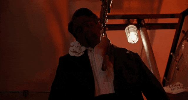 黑暗中一名男子走进了干洗店,按动了开关。